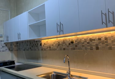 Conception d’une cuisine sur mesure, où design épuré et ergonomie se rencontrent pour offrir un espace à la fois fonctionnel et esthétique.